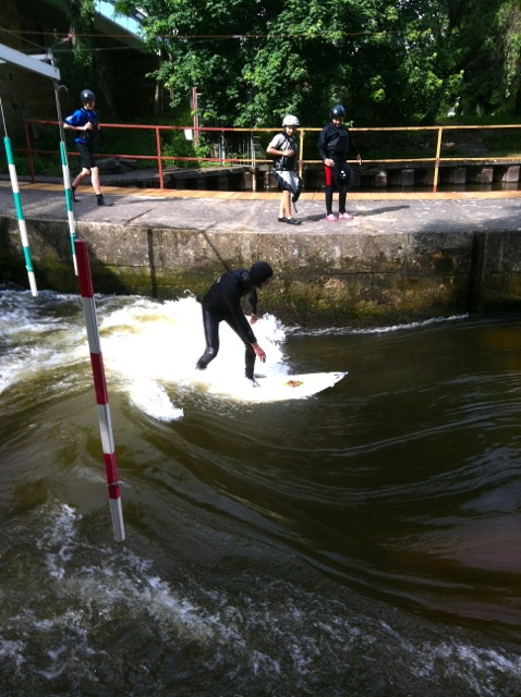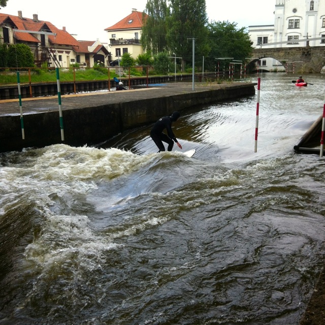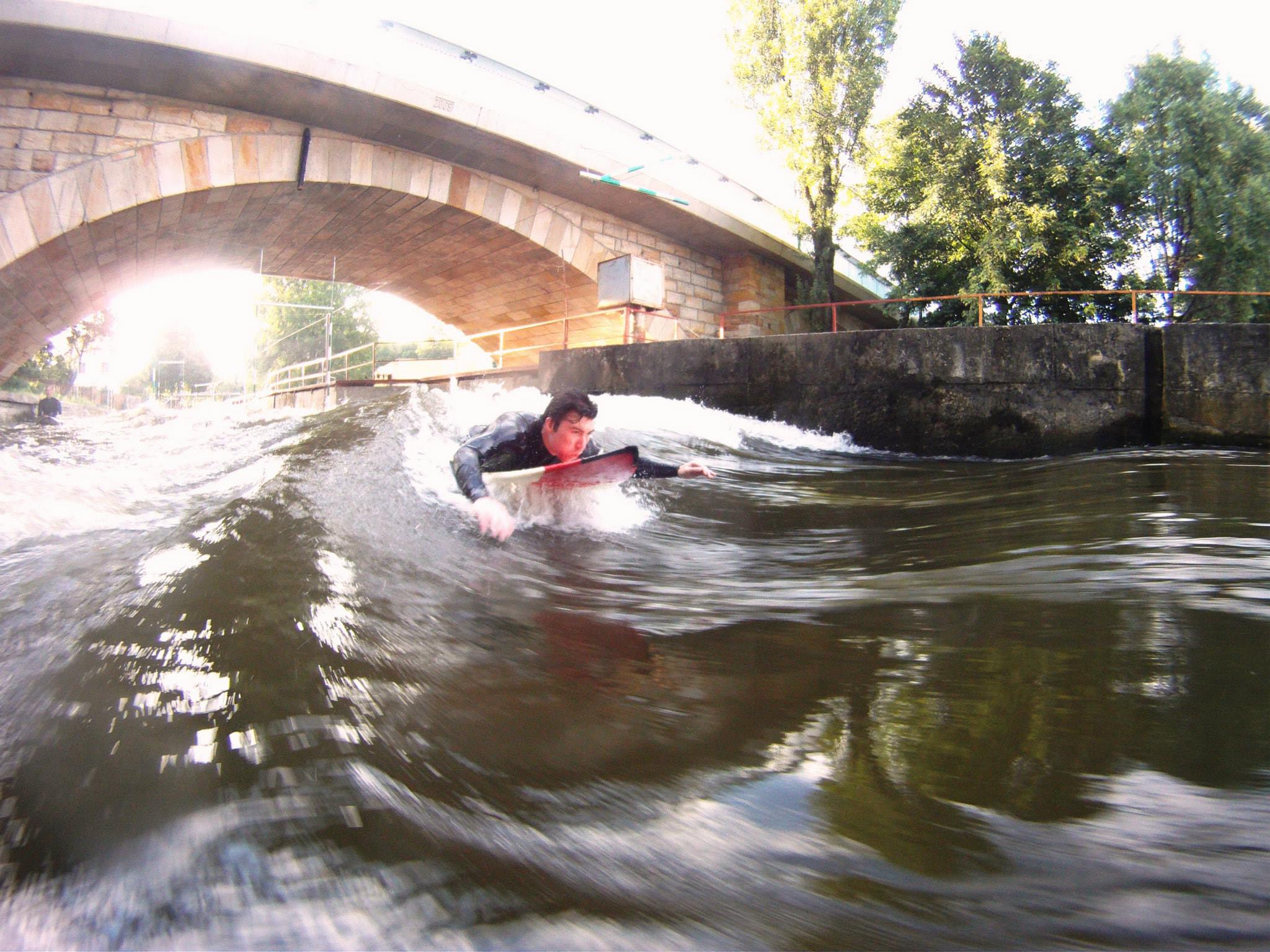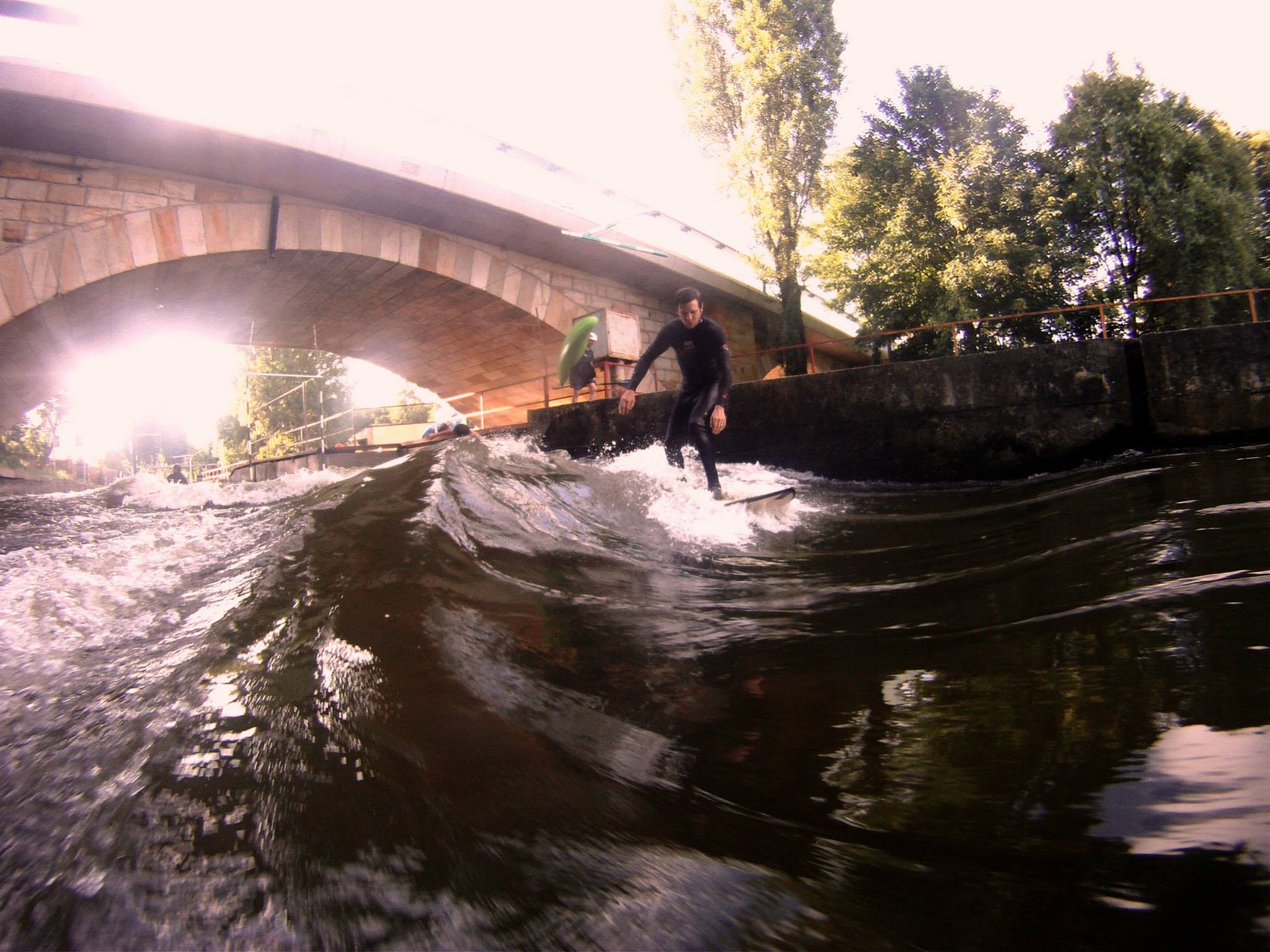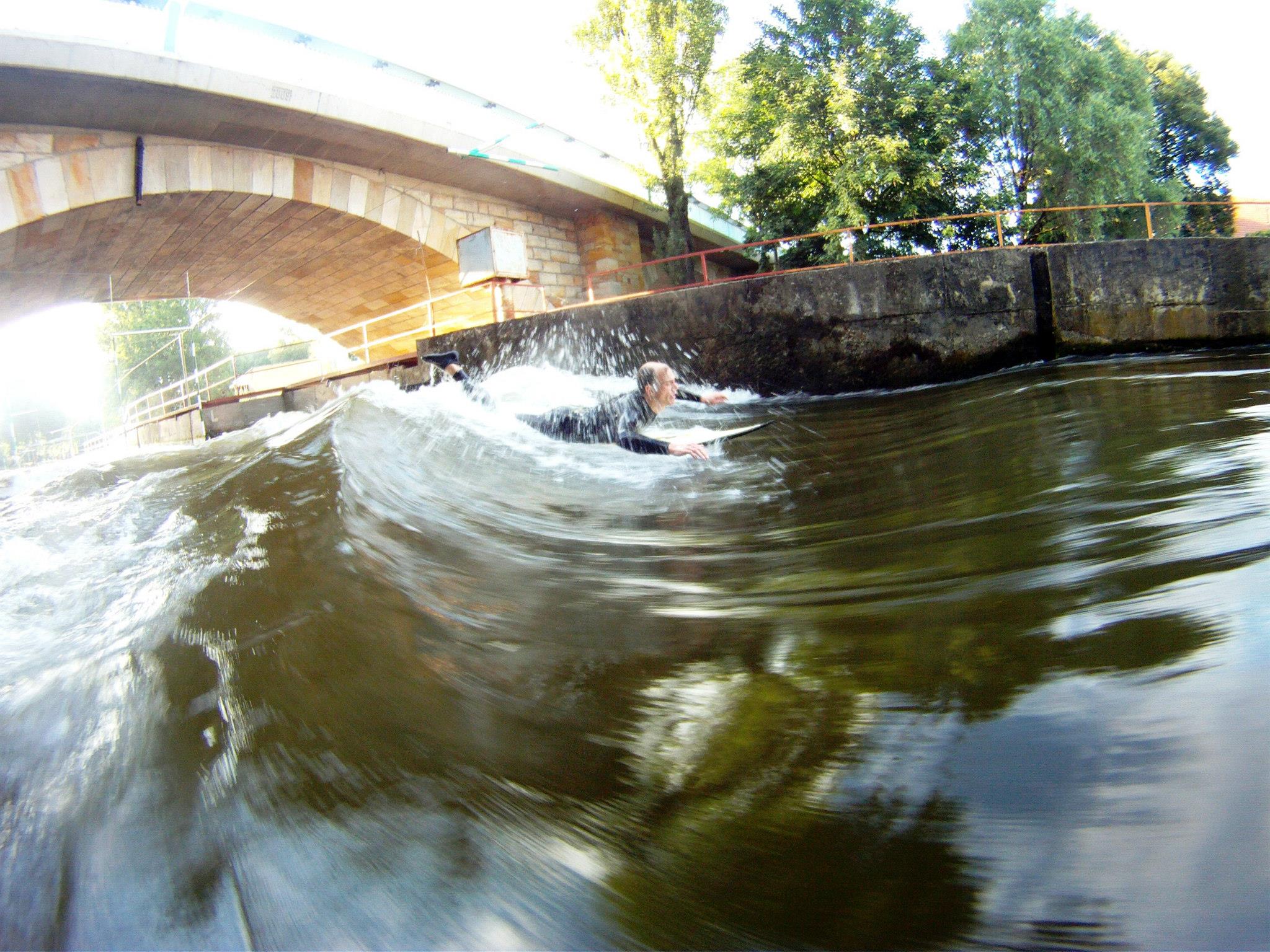 V sobotu 14.6. proběhlo úspěšně zatím poslední testování Vlny pod Zámkem v Brandýse nad Labem. Potřebovali jsme vyzkoušet jaký vliv na  rychlost a energii vody má zúžení s novou náběhovou hranou, které jsme před týdnem stavěli. Rád bych poděkoval všem dobrovolníkům, kteří přišli a pomohli se stavbou. Konstrukce je pevná a boční hráz dobře drží. Vliv obtoku na vlnu je příznivý a v praxi se potvrdilo to, co nám naznačovaly numerické modely, podle kterých vlnu dále upravujeme. V současné době ladíme umístění odrazníku tak, aby vlna byla co nejhladší a nejširší. Pokoušíme se ji nastavit tak, aby fungovala i při nižším stavu vody v hlavním toku Labe. Pokud se to podaří, nebudeme tolik závislí na srážkách a bude se moct jezdit každý den celé léto, ikdyž bude suché. Doufáme, že již brzy budeme moci dobře fungující vlnu zpřístupnit veřejnosti a začít realizovat program, který jsme pro Vás připravili.